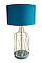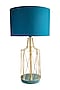 Delicately crafted with stainless steel rods in a crossed design, polished a luxurious gold, the Drusilla table lamp is a stunning piece for your side table in living rooms and bedrooms. Thin stainless steel rods form an interesting cross with a rectangular design on a contrasting blue-green thick base. A blue-green fabric lamp shade conceals the fitting and creates a soft, warm glow in your space.