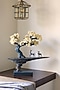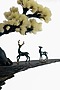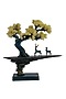 Introducing our stunning deer on the rise sculpture, a beautiful display of artistry and design. Crafted from high-quality polyresin, this sculpture features an abstract cliff rising from a rectangular block, with a majestic tree and two deer standing atop it. The sculpture is finished in a shaded blue hue with gold highlights, adding a touch of luxury and elegance. The tree carries fibre flowers in off-white, creating a stunning contrast.
