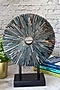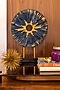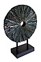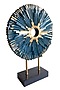 Made of resin, these sculptures consist of radiating spokes similar to the rays shining from the sun. Finished in blue with gold highlights, these art pieces are perfect for living areas.