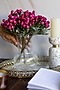 These artificial dark pink miniature bud rose bunches are a striking addition to any floral arrangement. The high-quality polyester flowers and leaves are meticulously crafted to resemble real miniature roses, while the plastic-coated metal stems provide durability and stability. These beautiful flowers bring a touch of boldness and sophistication to any room. The set includes two flower bunches.