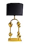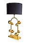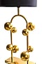 Crafted with a stainless steel rod and round globes placed asymmetrically, polished a luxurious gold, makes the Emilia table lamp. A stunning piece for your side table in living rooms and bedrooms, the black fabric lamp shade conceals the fitting and creates a soft, warm glow in your space.