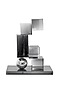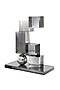 Introducing our captivating glass sculpture, a unique and abstract piece that is sure to impress. Crafted with crystal cubes in a step pattern on a flat rectangular crystal base, this sculpture is a beautiful display of artistry and design. The metallic finish ball on the base adds a striking contrast, making this sculpture a true standout in any room.