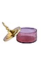 Textured glass jar in a pale pink shade with a regal metal gold finished cover. Perfect for keeping dry knickknacks and gifting during the festive season.