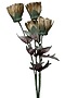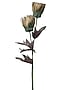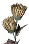 The bouquet is made of foam and includes two pin cushion flower stems shaded in a rich olive, foam-finished shaded green leaves, and a plastic stem. The stem is further clad with foam strips. Each stem has two flower heads. This set contains two flower stems.