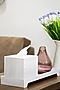 A raised narrow tray crafted in white marble finish acrylic. A tissue box shaped like a cube with a slider at the bottom for refilling. Perfect for dressing tables and powder rooms.