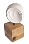 Presenting a white hemisphere sculpture, a hollowed-out circular beautiful and unique piece of art that will add interest and texture to any space. This sculpture is crafted from high-quality paper-Mache and perched on a metal base with a natural finish wooden stand. Its circular design adds to its modern and minimalist style, making it a perfect addition to your home or office decor.