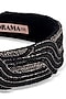 Featuring a black flat headband in cotton satin base with crystals, beads, and thread hand embroidery.
