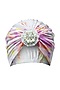 Featuring a multi-colored turban styled cap in lycra base with crystals, shells, beads, pearls, and thread hand embroidery.