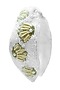 Featuring a pearl white knotted headband in cotton satin and poly crepe base with crystals, shell, sequins, and thread hand embroidery.