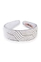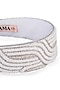 Featuring a white and silver flat headband in cotton satin base with crystals, beads, and thread hand embroidery.