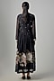 Featuring a black flared tunic in fine chanderi base with embroidery. It is paired with an inner. Accentuate it with dangler earrings and block heels for festive celebrations or family gatherings.
