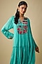 Featuring a blue tiered kurta in crepe chiffon base with hand embroidery. It is paired with dhoti pants. Accentuate it with statement earrings and heels for a brunch or casual outing.