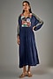 Blue Crepe Chiffon Hand Embroidered Midi Dress