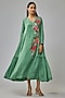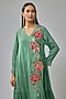 Refresh your look with this blue crepe chiffon panel dress. It features beautiful hand embroidery, a V-neckline, full sleeves, and a fluid silhouette that adds movement and flair to the overall look. Style it with jewelled flats, gold hoops, and a sling bag.