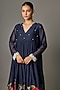 Featuring a blue flared tunic in fine chanderi base with embroidery. It is paired with an inner. Accentuate it with dangler earrings and block heels for festive celebrations or family gatherings.