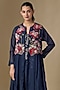 Blue Fine Chanderi Hand Embroidered Jacket Dress