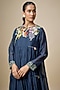 Featuring a blue tiered midi dress in fine chanderi base with hand embroidery. It is paired with an inner. Accentuate it with dangler earring and mules for festive gatherings or garden parties.