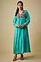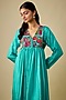 Featuring a blue flared dress in pure silk base with hand embroidery. It is paired with an inner. Accentuate it with statement earrings and heels for a brunch or casual outing.
