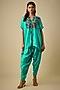 Featuring a blue kaftan kurta in pure silk base with hand embroidery. It is paired with dhoti pants. Accentuate it with statement earrings and heels for a brunch or casual outing.