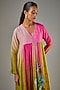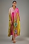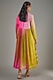 Fuchsia & Green Shaded Fine Chanderi Hand Embroidered Flared Midi Dress