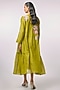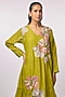Featuring a green anarkali dress in fine chanderi base with side panel detailing and applique hand embroidery. It is paired with an inner. Accentuate it with statement earrings and coordinated mules or flats for a relaxed sleek look, perfect for family gatherings or daytime outings.