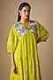 Featuring a green dress in fine chanderi base with embroidery. It is paired with an inner. Accentuate it with stud earrings and heels for a complete look.