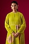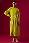 Featuring a green gathered dress in fine chanderi base with floral embroidery. It is paired with an inner. Accentuate it with hoop earrings and block heels for a brunch date or garden parties.