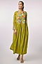 Featuring a green anarkali dress in fine chanderi base with hand embroidery. It is paired with an inner. Accentuate it with statement earrings and coordinated mules or flats for a relaxed sleek look, perfect for family gatherings or daytime mehendi functions.