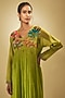 Green Fine Chanderi Hand Embroidered Flared Dress
