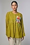 Featuring a green gathered shirt in fine chanderi base with hand embroidery. It is paired with an inner. Accentuate it with denim jeans or ivory pants, statement earrings and block heels, for a contemporary look, perfect for daily office wear or brunch dates.