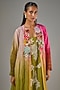 Featuring a green gathered jacket in fine chanderi base with hand embroidery. It is paired with an inner. Accentuate it with dangler earrings and block heels for festive celebrations or family gatherings.
