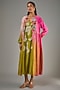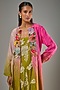 Featuring a green gathered jacket in fine chanderi base with hand embroidery. It is paired with an inner. Accentuate it with dangler earrings and block heels for festive celebrations or family gatherings.