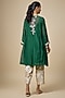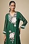 Featuring a green kurta in fine chanderi base with a v-neckline and hand embroidery. It is paired with thread embroidered pants and an inner. Accentuate it with kundan polki earring and heels for festive gatherings or mehendi ceremony.