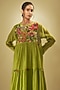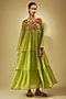 Green Fine Chanderi Hand Embroidered Tiered Dress