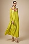 Green Fine Chanderi Hand Embroidered Tiered Midi Dress