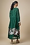 Featuring a green flared midi dress in fine chanderi base with hand and machine embroidery. It is paired with an inner. Accentuate it with dangler earring and block heels for festive gatherings or garden parties.