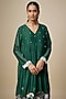 Green Fine Chanderi Hand & Machine Embroidered Flared Midi Dress