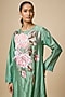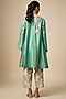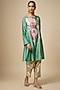 Featuring a green kalidar kurta in heavy chanderi base with thread hand embroidery. It is paired with embroidered pants and an inner. Accentuate it with kundan polki earring and heels for festive gatherings or pooja ceremony.
