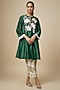Featuring a green short anarkali in heavy chanderi base with thread hand embroidery. It is paired with embroidered pants and an inner. Accentuate it with kundan polki earring and heels for festive gatherings or mehendi ceremony.