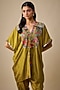 Featuring a green kaftan kurta in pure silk base with hand embroidery. It is paired with dhoti pants. Accentuate it with statement earrings and heels for a brunch or casual outing.