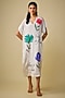Featuring an ivory midi dress in crepe chiffon base with drop shoulders and floral hand embroidery. Accentuate it with statement earrings and heels for a brunch or casual outing.