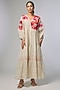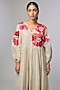 Featuring an ivory dress in fine chanderi base with gathered sleeves and applique hand embroidery. It is paired with an inner. Accentuate it with statement earrings and coordinated mules or flats for a relaxed sleek look, perfect for family gatherings or daytime outings.