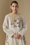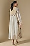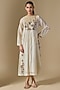 Bring a touch of effortless spark to your wardrobe with this ivory side-gathered dress. Crafted in fine chanderi fabric, it showcases floral hand embroidery, full sleeves and a relaxed silhouette. The dress is paired with an inner. Style it with jewelled wedges, statement earrings, and dewy makeup for a touch of glamour.