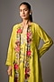 Featuring a lime green long jacket in fine chanderi base with hand and machine embroidery. It is paired with a sequins inner. Accentuate it with block heels and statement earrings for festive occasions or wedding ceremonies.