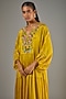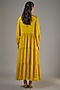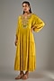 Featuring a mustard midi dress in crepe chiffon base with hand embroidery and gathered sleeves. It is paired with an inner. Accentuate it with dangler earrings and block heels for festive celebrations or family gatherings.
