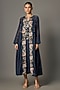 Featuring a navy blue jacket in fine chanderi base with embroidery. It is paired with an inner. Accentuate it with dangler earrings and block heels for festive celebrations or family gatherings.