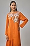 This orange flapper dress is designed with crepe chiffon fabric, offering a light and elegant feel. It showcases exquisite hand embroidery, full sleeves, and a tiered flare hemline that adds movement and flair to the overall look. Style with jewelled flats, gold hoops, and a sling bag.