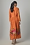 Featuring an orange flared tunic in fine chanderi base with embroidery. It is paired with an inner. Accentuate it with dangler earrings and block heels for festive celebrations or family gatherings.
