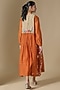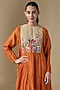 Bring a touch of effortless spark to your wardrobe with this orange side-gathered dress. Crafted in fine chanderi fabric, it showcases floral hand embroidery, full sleeves and a relaxed silhouette. The dress is paired with an inner. Style it with jewelled wedges, statement earrings, and dewy makeup for a touch of glamour.