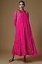 Pink Crepe Chiffon Hand Embroidered Frilled Dress